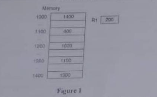 c) Suppose we have the instruction Load 1000. Given that memory and register R1 contain the values as shown in Figure 1: