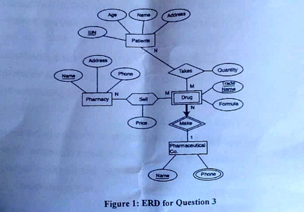 ii. Implement prescribed table such that patientNo and drugNo have the same values as in Patient and Drug tables. Also ensures that when system administrator will modify either patientNo or drugNo or both the values should be reflected on prescribed table and when the administrator will try to delete patientNo or drugNo values in their parent tables the operation should fail. Lastly, ensure that the unit per day ranges from 1 to 3. (3 Marks)